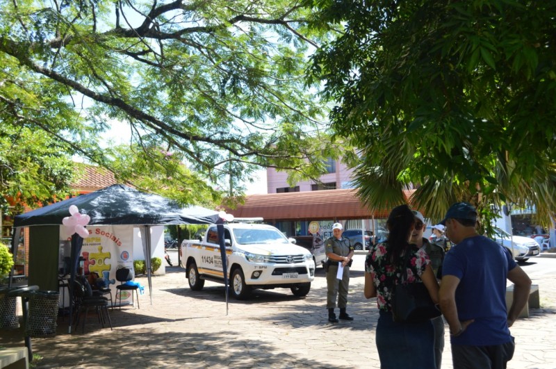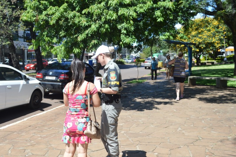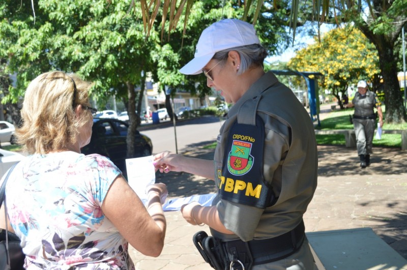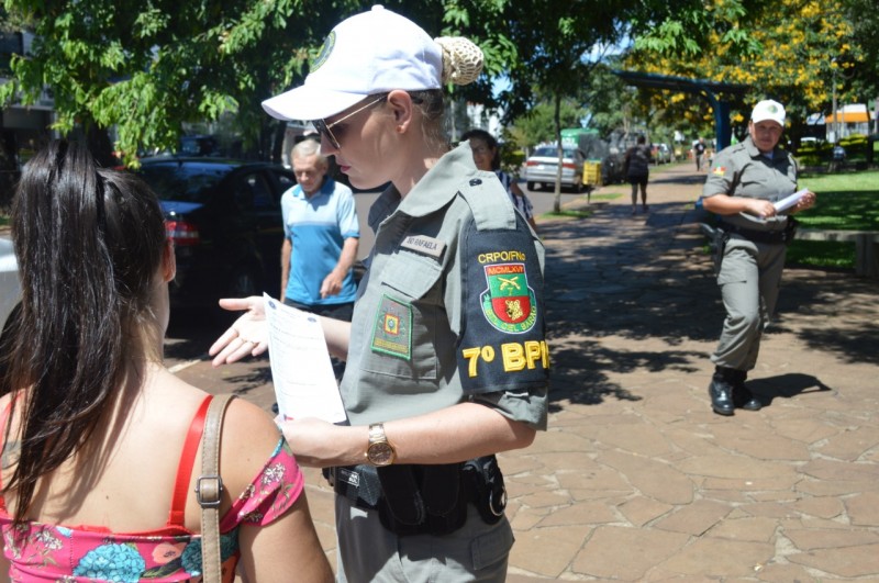Na segunda-feira (2/3), o 7º Batalhão de Polícia Militar (7ºBPM), com o apoio de suas policiais femininas, iniciou uma panfletagem com orientações no combate à violência doméstica na praça central de Três Passos.