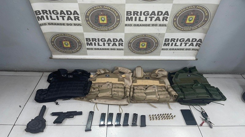 A Brigada Militar através do 1º Batalhão de Polícia de Choque realizou patrulhamento tático em apoio ao 1º Batalhão de Polícia Militar onde uma das equipes , realizou patrulhamento a pé em um bairro onde se ouvia diversos disparos de arma de fogo na região. Durante o deslocamento, foi avistado um homem entrando em um veículo, momento em que visivelmente arrumou um objeto em sua cintura assemelhado a uma arma de fogo. Sendo abordado e flagrado que o indivíduo estava portando uma arma fogo. Foi então efetuada a revista no interior do veículo, e ao ser revistado dentro de uma mala, foram encontrados uma grande quantia de material bélico. O veículo e os materiais foram aprendidos.