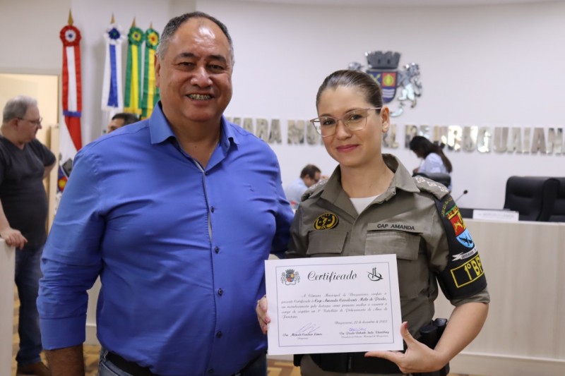 Na tarde desta quinta-feira (29/12), a Capitã Amanda Cavalcanti Mello de Paula, recebeu voto de Congratulação da Câmara de Vereadores na cidade de Uruguaiana.