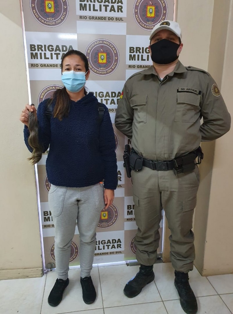 A Cassiane Silveira da Silva entregou sua mecha de cabelo na BM de São Lourenço do Sul para a campanha #CabelosdeAço.