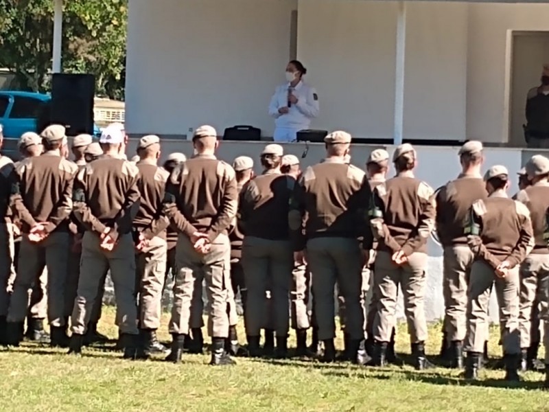 Na tarde desta quarta-feira (21/7), a capitã Isadora, chefe do Setor Biopsicossocial do Hospital da Brigada Militar de Santa Maria, esteve no Polo de Ensino do Vale do Rio Pardo, onde ministrou uma palestra aos alunos-soldados.