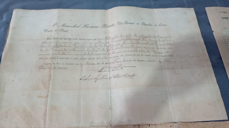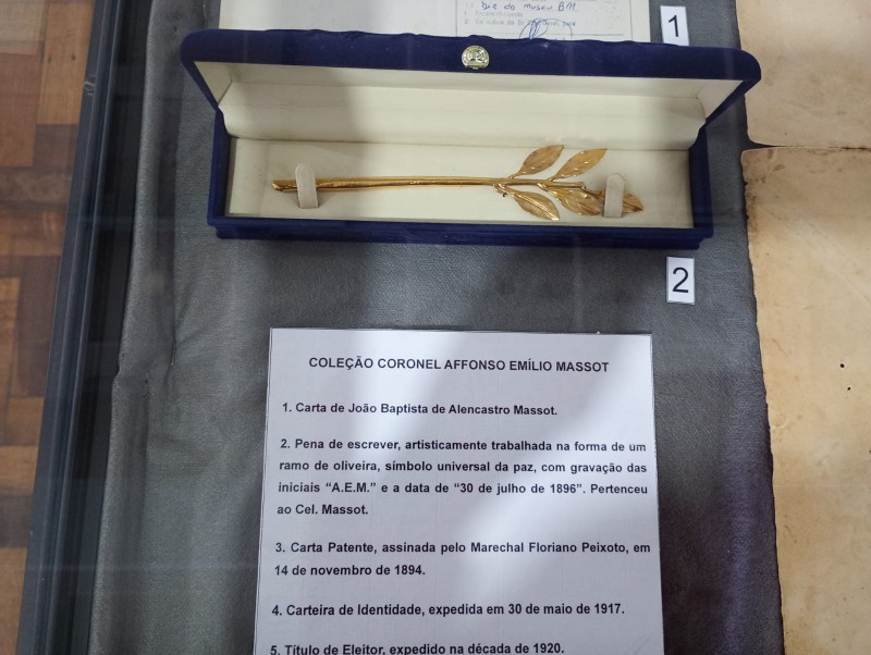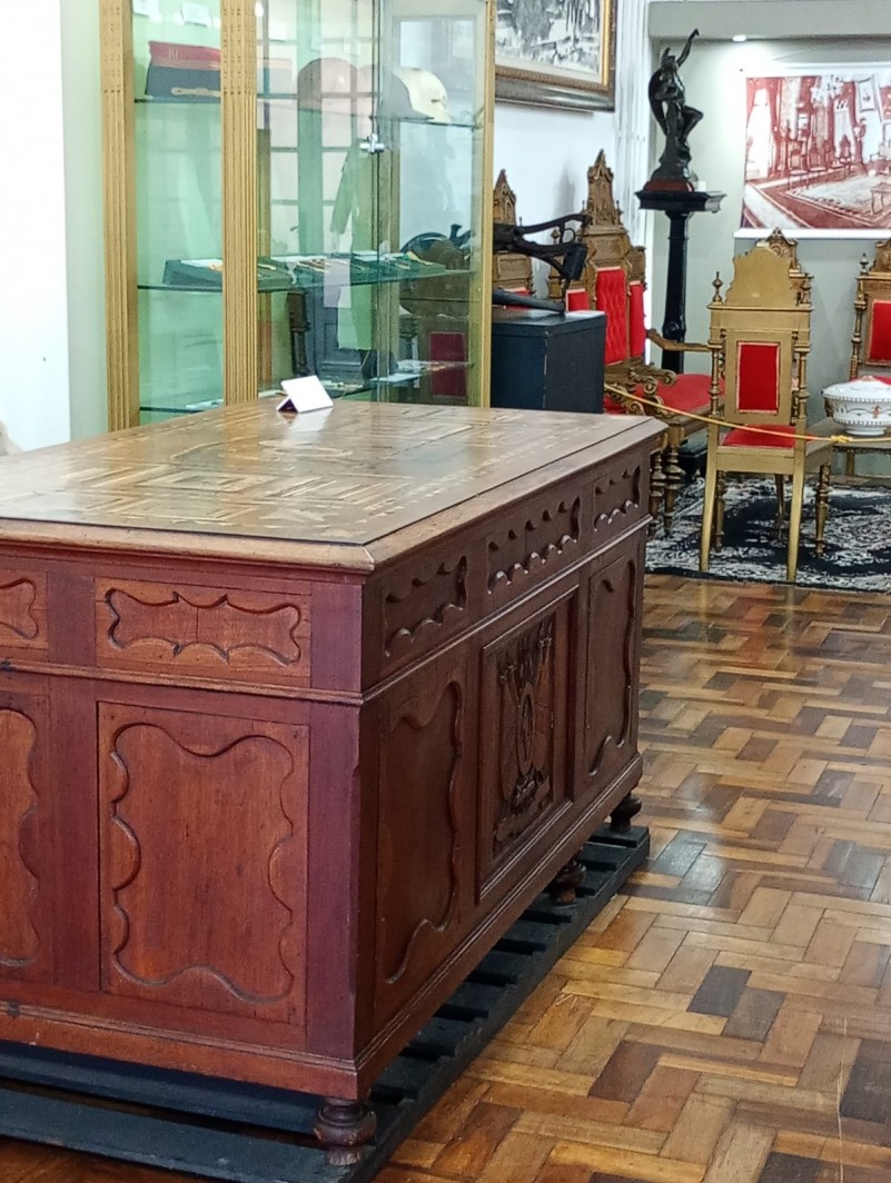 A mobília centenária e a cuspideira podem ser vistos na exposição permanente do Museu da Brigada Militar.