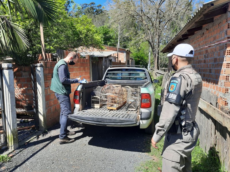 Os Fiscais da Secretaria do Meio Ambiente realizaram a apreensão de 17 pássaros silvestres, 13 gaiolas e 03 apanhadores na cidade de Nova Santa Rita.