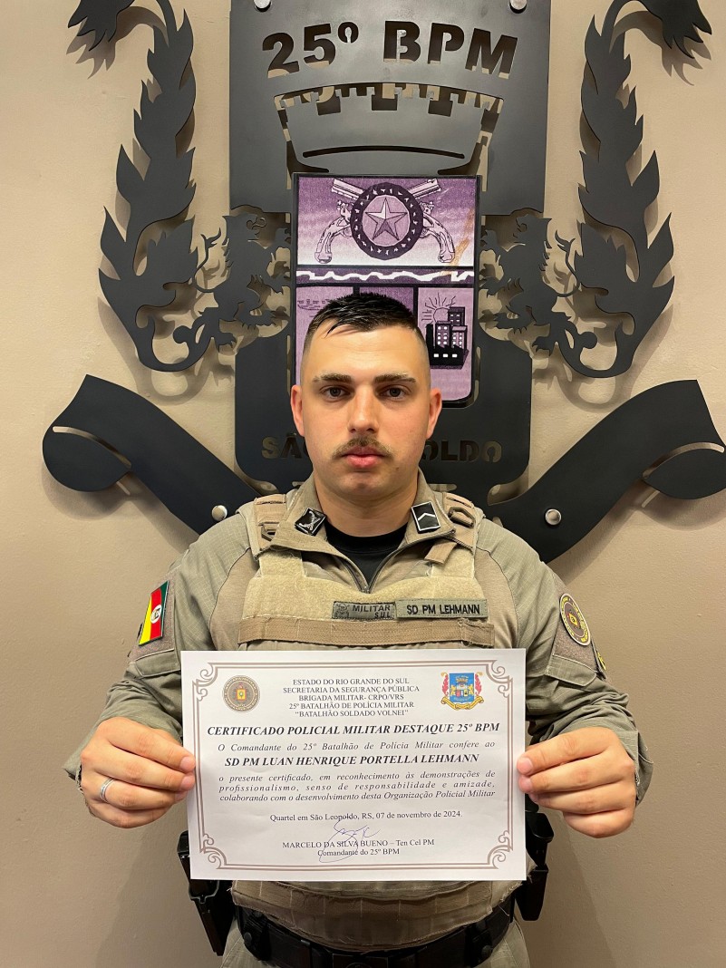 2024 ao soldado PM Luan Henrique Portella Lehmann. Ele foi reconhecido pelo seu profissionalismo, sua responsabilidade e pela camaradagem com colegas oficiais e praças da Unidade.