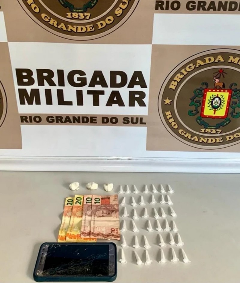 Na manhã desta segunda-feira (24/01), no Bairro Bosque, foram apreendidos com um homem após revista pessoal: 35 porções de cocaína, 03 porções de maconha, R$ 40,00 e um aparelho celular.