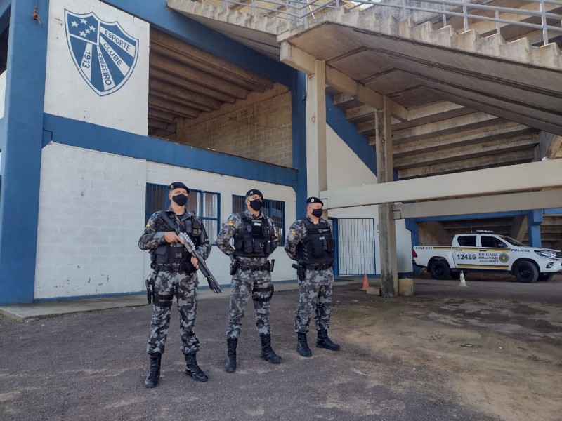 Na tarde de domingo (12/09), policiais militares do Pelotão de Força Tática do 26º Batalhão de Polícia Militar atuaram durante partida de futebol entre os clubes Esporte Clube Cruzeiro e Glória de Vacaria, jogo válido pela Divisão de Acesso do Campeonato Gaúcho de 2021. A partida foi realizada na Arena Cruzeiro, em Cachoeirinha.