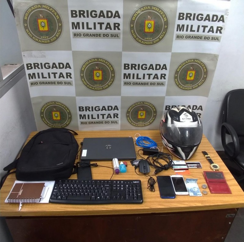 Os indivíduos foram presos no Bairro Berto Círio, com todos os pertences roubados da vítima. Foi recuperado dois celulares, um notebook, um relógio, um capacete, uma mochila preta e carteira com documentos. Também foi apreendida a motocicleta usada para efetuar o roubo.